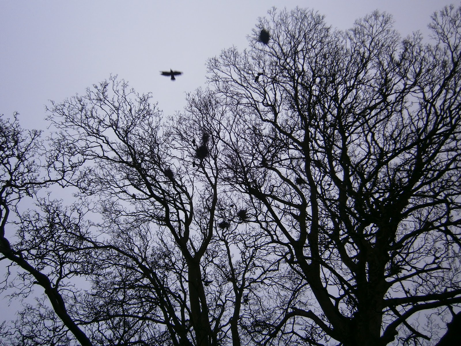 As we travel around there are the most wonderful vistas of flat green fields with the lacy skeleton of trees reaching up like candelabras, often studded with the nests of rooks. The other evening we passed some rookeries like these and in each nest a black rook silhouette poked up its head. I'll lapse into descriptive prose to cover the lack of photographs.  (Ed. done and dusted!)